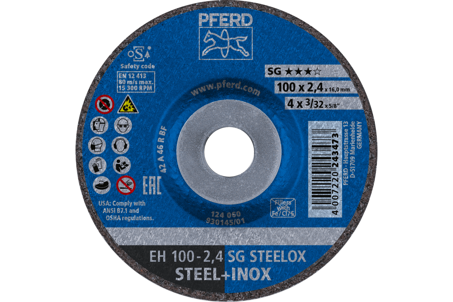 Cut-Off Wheel Eh 100X2.4X22.23 Mm Depressed Centre Performance Line Sg Steelox For Steel/Stainless Steel