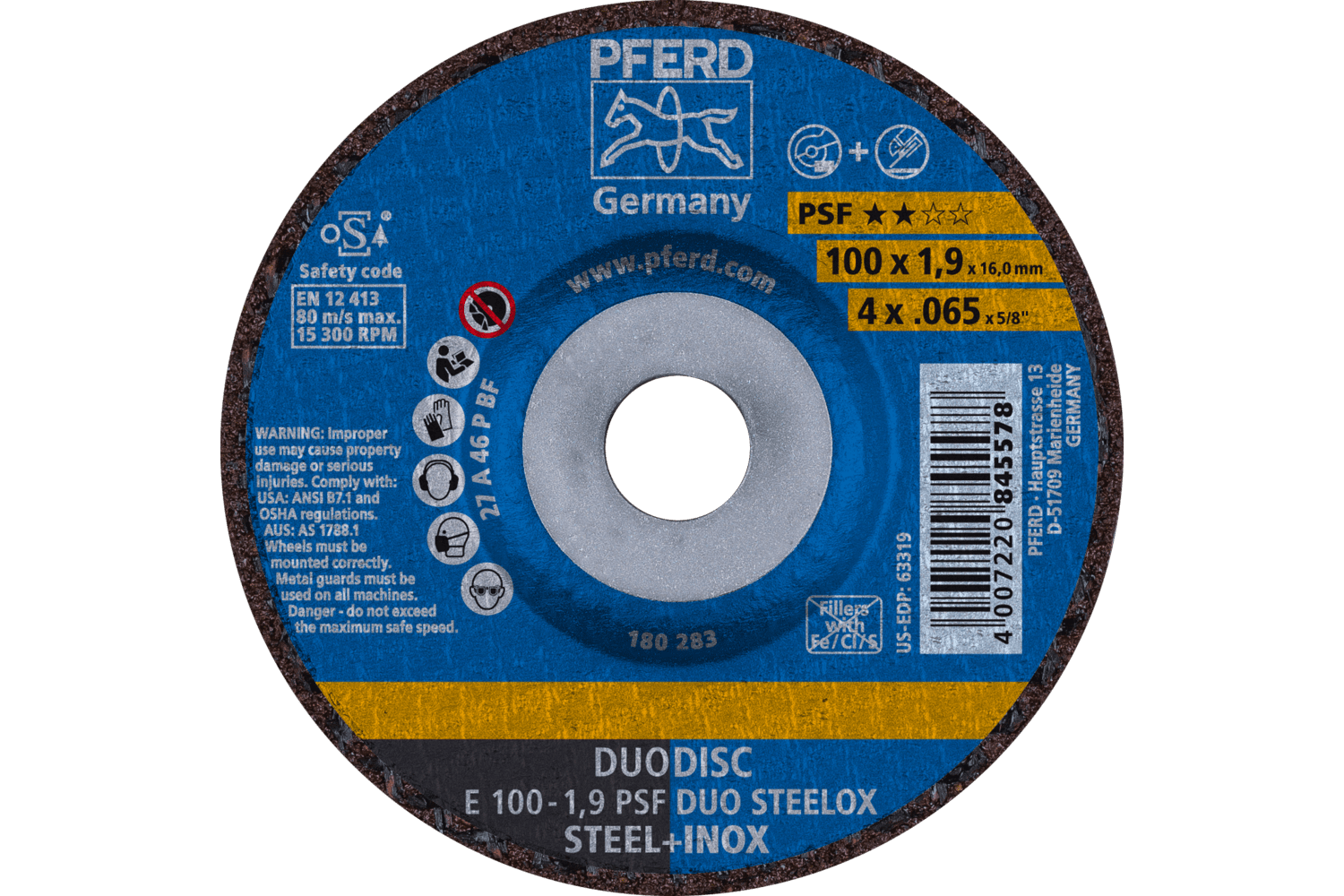Duodisc Cut-Off/Grind. E 100X1.9X16 Mm Depressed-Centre Uni. Line Psf Duo Steelox F. Steel/Stainless Steel