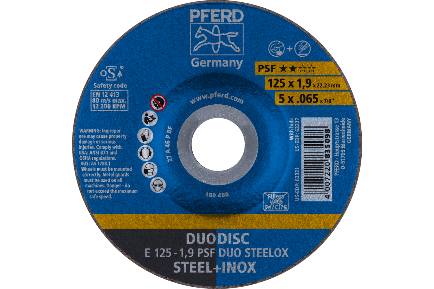 Duodisc Cut-Off/Grind. E 125X1.9X22.23 Mm Depressed-Centre Uni. Line Psf Duo Steelox F. Steel/Va