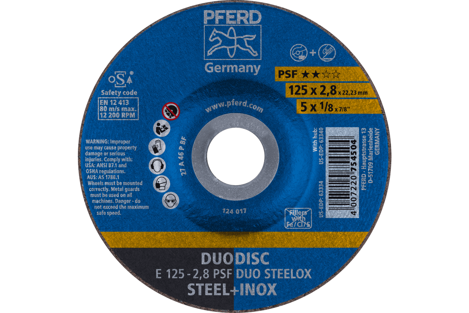 Duodisc Cut-Off/Grind. E 125X2.8X22.23 Mm Depressed-Centre Uni. Line Psf Duo Steelox F. Steel/Va