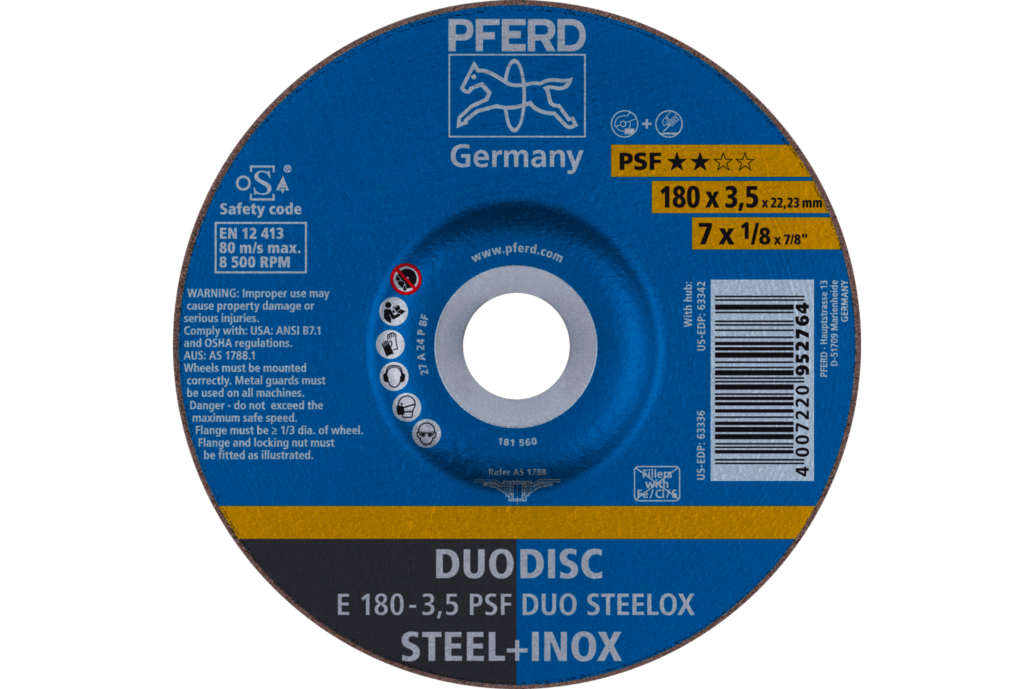 Duodisc Cut-Off/Grind. E 180X3.5X22.23 Mm Depressed-Centre Uni. Line Psf Duo Steelox F. Steel/Va