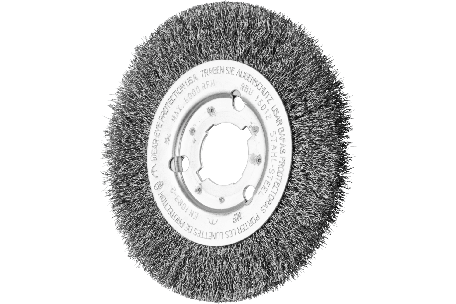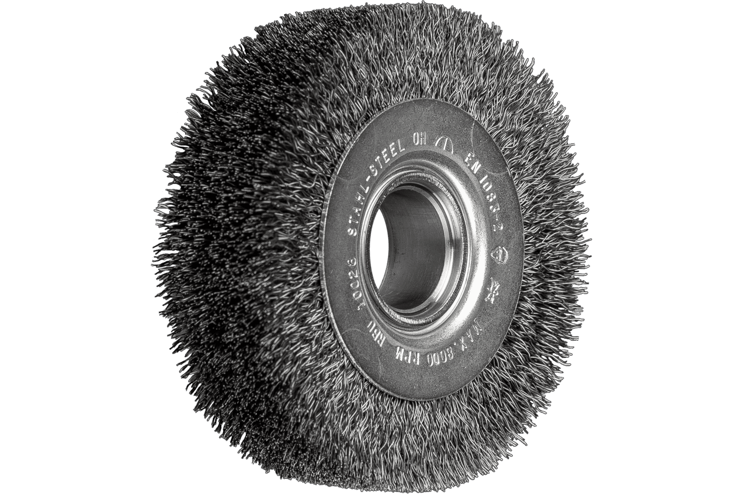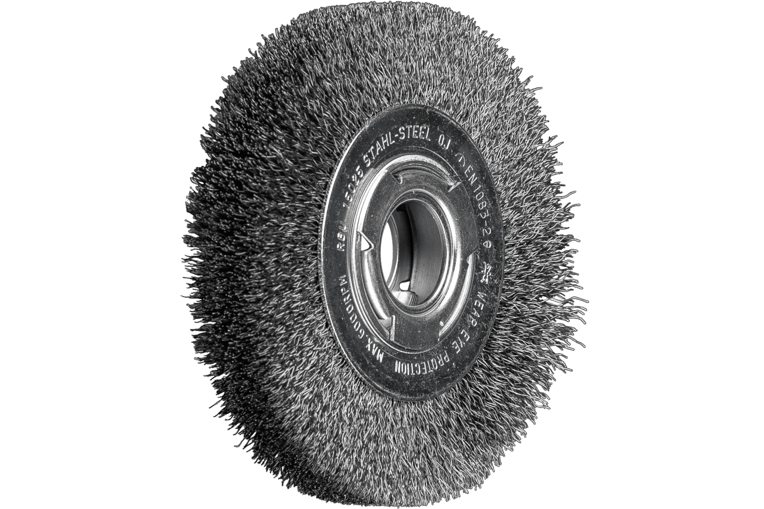 Wheel Brush Wide Crimped Rbu Dia. 150X25Xvariable Hole Steel Wire Dia. 0.30 Bench Grinder