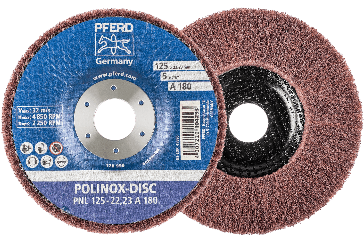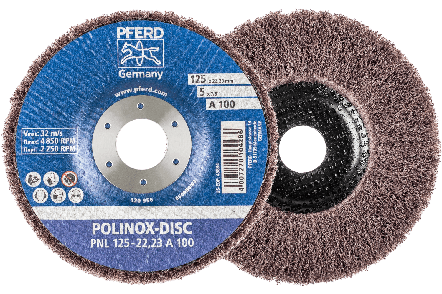 Polinox Non-Woven Fibre-Backing Disc Pnl Dia. 125 Mm Centre Hole Dia. 22.23 Mm A100 For Fine Grinding And Finishing