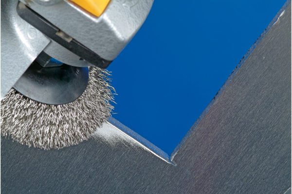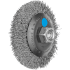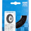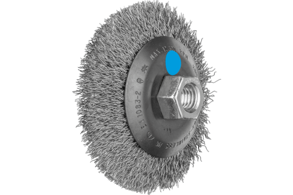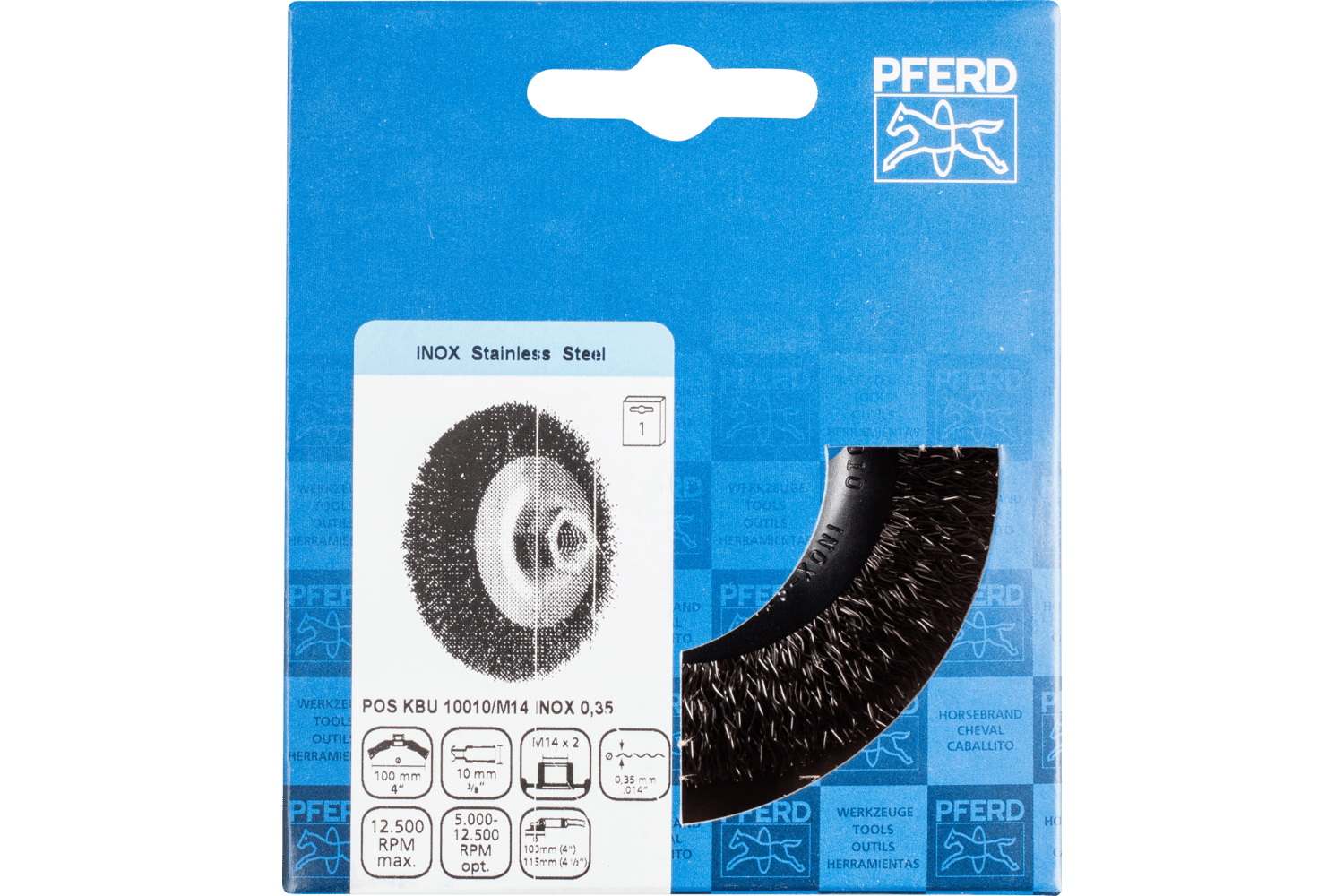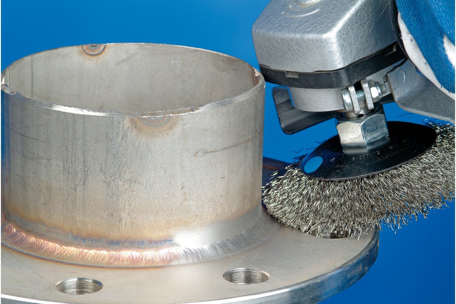 Excellent for medium-duty brushing such as deburring, cleaning and derusting. In order to fulfil the particular requirements for working with stainless steel (INOX), PFERD uses wire quality 1.4310 (V2A) for all INOX brushes. Practical experience from industry has shown that this offers very good corrosion resistance with an optimum tool life. All PFERD brushes with INOX filaments are colour-coded in blue and are suitable for use on all stainless steels (INOX), such as V4A. The wire quality 1.4310 tends to become ferromagnetic in the case of cold working; i.e. it can be attracted using magnets.;The reason for this is a change in the microstructure caused by deformation (e.g. during the wire drawing process). This does not have any impact on the quality and corrosion resistance of the INOX filament. The filament is still resistant to corrosion. Stainless steel wire (INOX) withstands temperatures up to 450 °C.