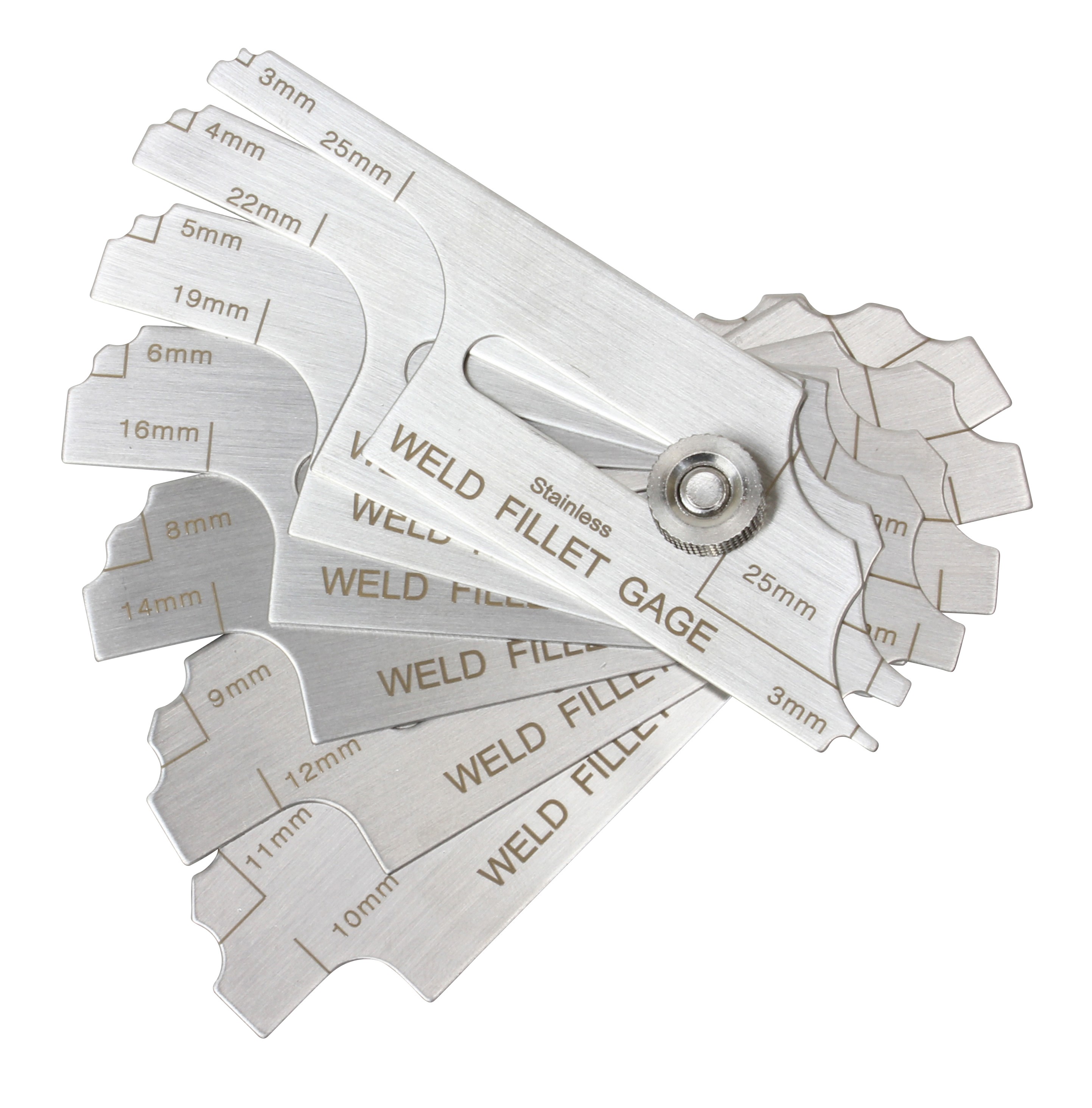 Quick & accurate measurement of fillet welds. Made from stainless steel, wont bend or rust. All numerals are etched, wont rub off. Measures 11 common weld sizes in metric & imperial. Easy size selections, locks with knurled finger nut. Use the single arc