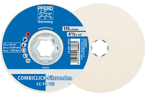 Combiclick Felt Discs Cc-Fr Dia. 115 Mm For Pre-Polishing And High-Gloss Polishing With An Angle Grinder
