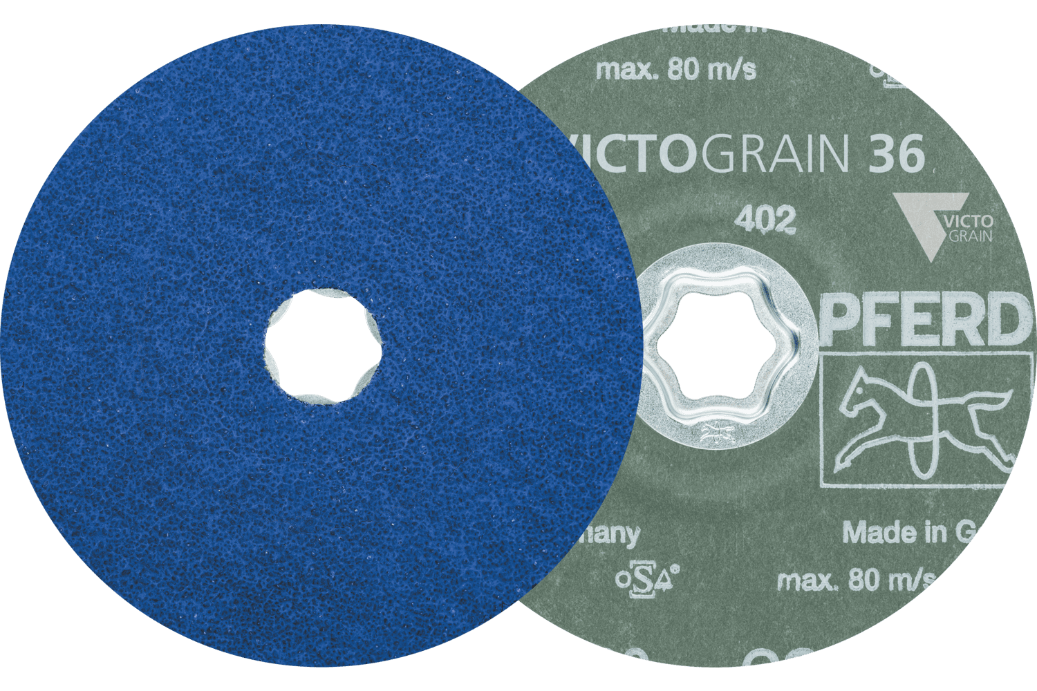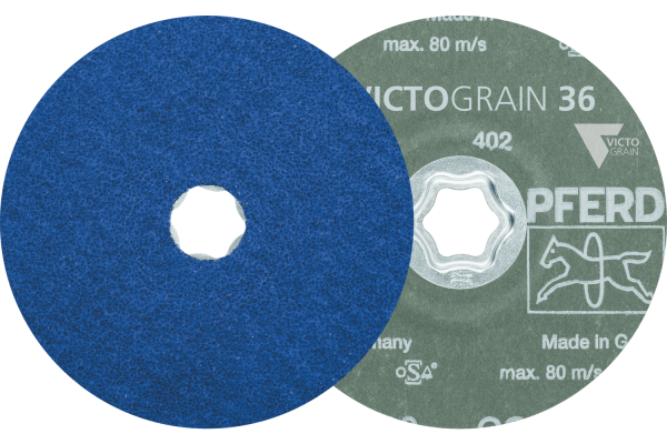 The COMBICLICK system consists of a specially developed backing pad and a rugged mounting system at the back of the tool. With the backing pad, COMBICLICK tools can be used on commercially available angle grinders. The unique geometry of the cooling slots ensures high air throughput, which in turn considerably reduces the thermal load on the abrasive material and the workpiece. Compared with conventional tools, the quick-mounting system, robust holder, secure tool-locking feature and integrated cooling system together achieve a workpiece temperature that is 30 % lower, a 25 % higher stock removal rate, a 30 % longer tool life, and better utilization of the abrasive material. PFERD fibre discs are manufactured in accordance with ISO 16057 in shape A1 version F under the designation “vulcanized fibre disc”. For maximum aggressive grinding with an extremely long tool life and an outstanding stock removal rate on steels and materials which are hard or have poor heat-conducting properties. Outstanding, constant high performance thanks to the VICTOGRAIN abrasive grain. Active grinding additives in the coating substantially improve the stock removal rate, prevent clogging and result in cooler grinding.