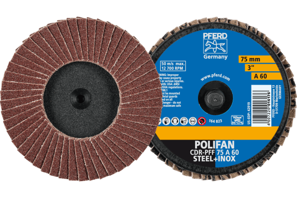 For general coarse grinding work with high stock removal rates. Ideal for dressing weld seams in hard-to-reach places. Longer tool life and higher stock removal rate when compared to abrasive discs. The CDR clamping system has a threaded connection with male thread (plastic) on the tool side. Also suitable for the following commonly used systems: Roloc™, Lockit, Speed Lok TR, Power Lock Type III, Fastlock-System B, Roll-On.