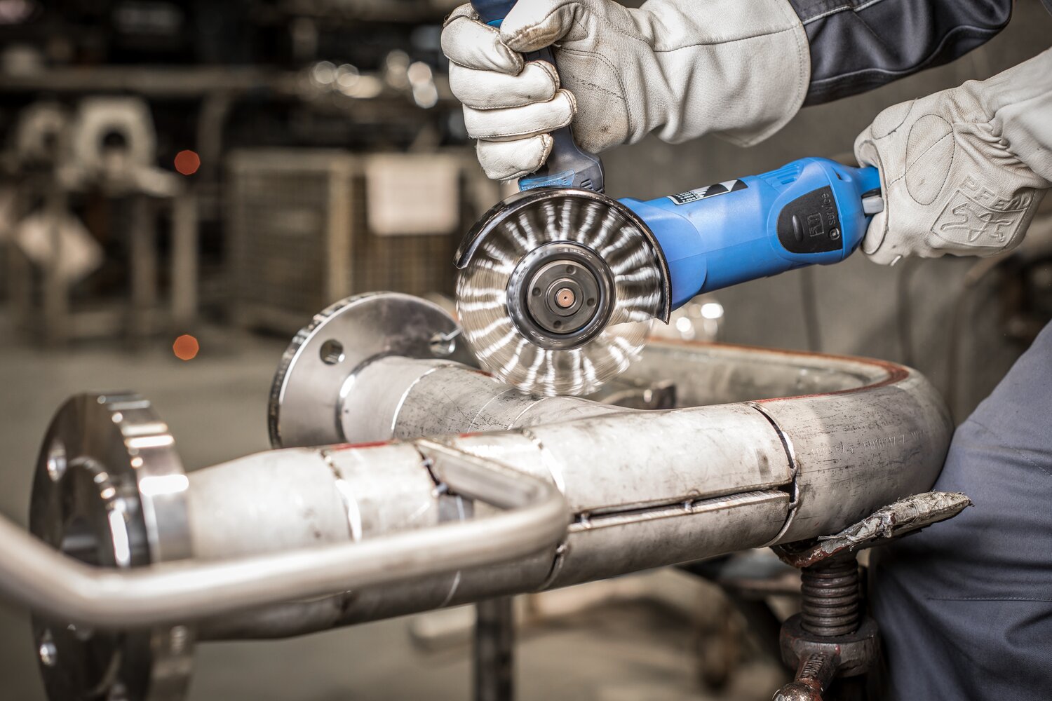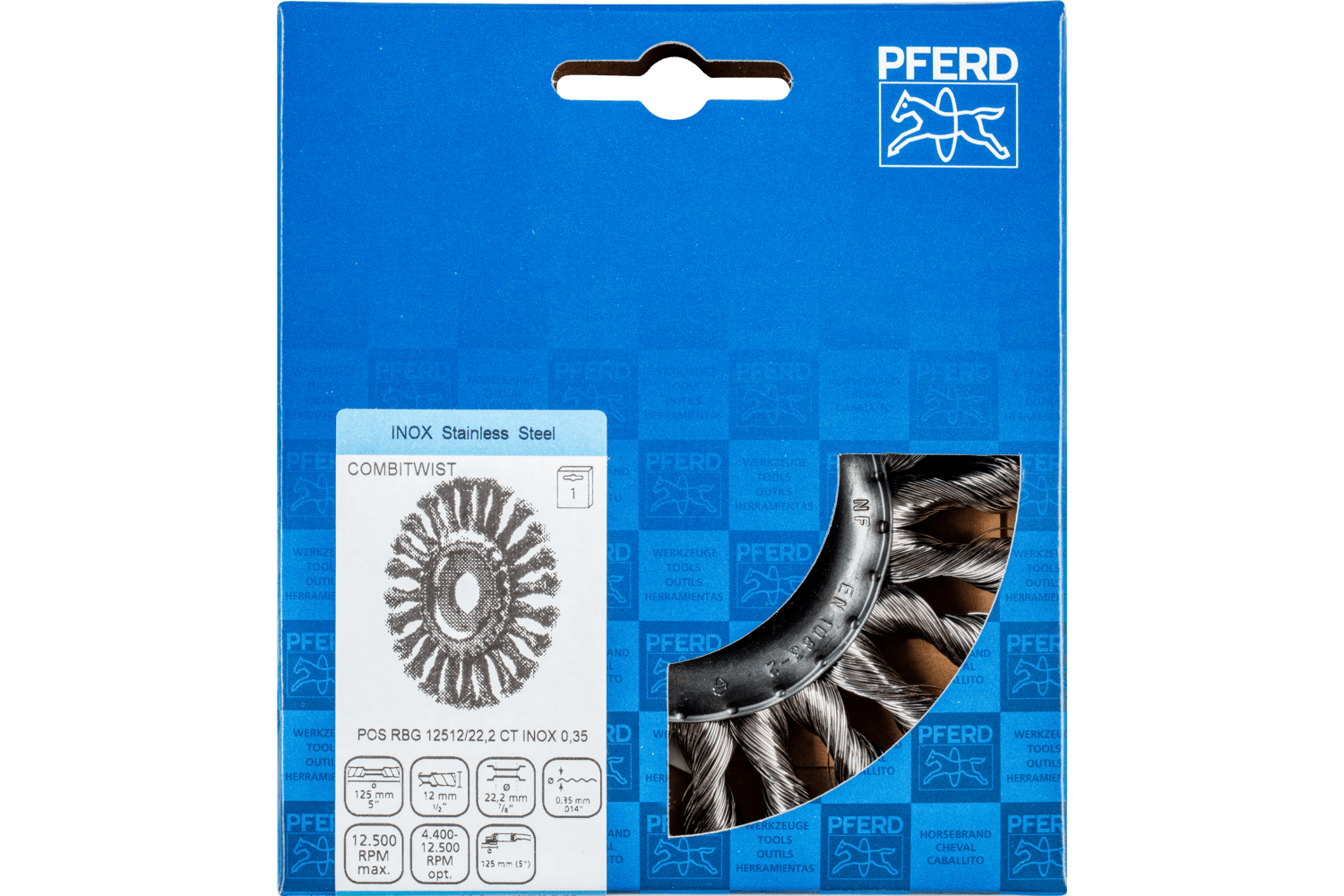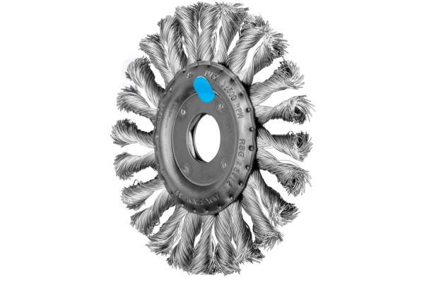 In order to fulfil the particular requirements for working with stainless steel (INOX), PFERD uses wire quality 1.4310 (V2A) for all INOX brushes. Practical experience from industry has shown that this offers very good corrosion resistance with an optimum tool life. All PFERD brushes with INOX filaments are colour-coded in blue and are suitable for use on all stainless steels (INOX), such as V4A. The wire quality 1.4310 tends to become ferromagnetic in the case of cold working; i.e. it can be attracted using magnets.;The reason for this is a change in the microstructure caused by deformation (e.g. during the wire drawing process). This does not have any impact on the quality and corrosion resistance of the INOX filament. The filament is still resistant to corrosion. Stainless steel wire (INOX) withstands temperatures up to 450 °C. Very aggressive brush. Suitable for heavy-duty brushing in metalwork such as descaling, derusting, deburring, cleaning of weld seams and removal of adhesive residues and spatter.