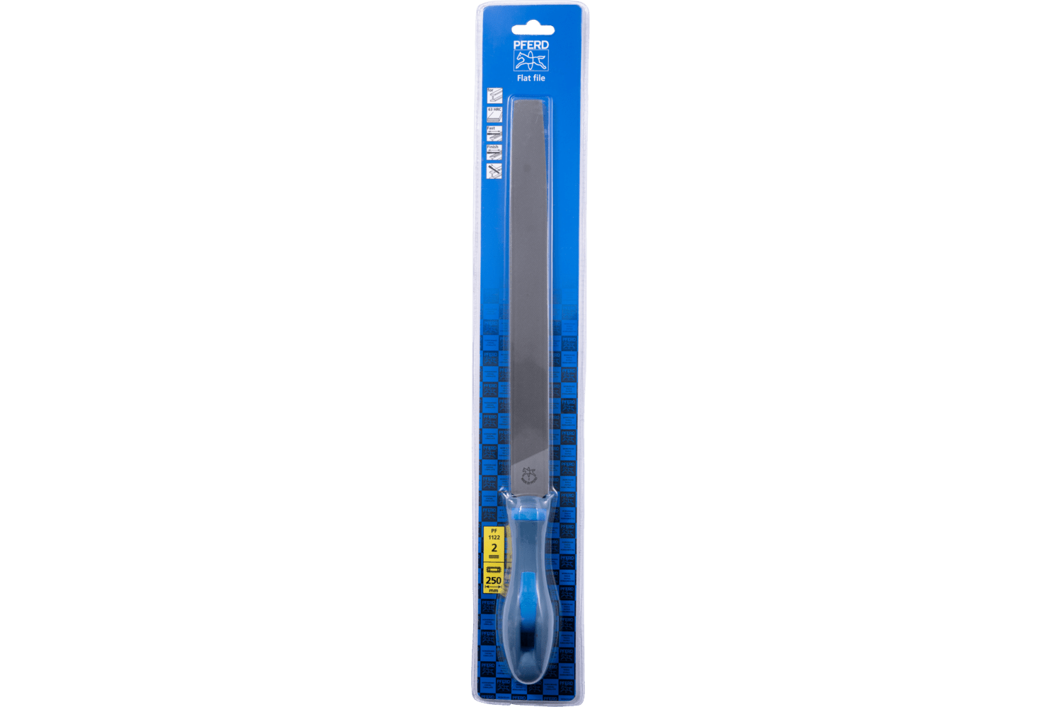 PFERD produces files for the workshop with the highest quality standards. They achieve a long tool life and very good stock removal rates. Rectangular file, tapered and cut on four sides. Tanged version. Shape B according to DIN 7261. Suitable for work on rectangular geometries. Cross cut for general filing work. Files are supplied in blister packaging with a handle.