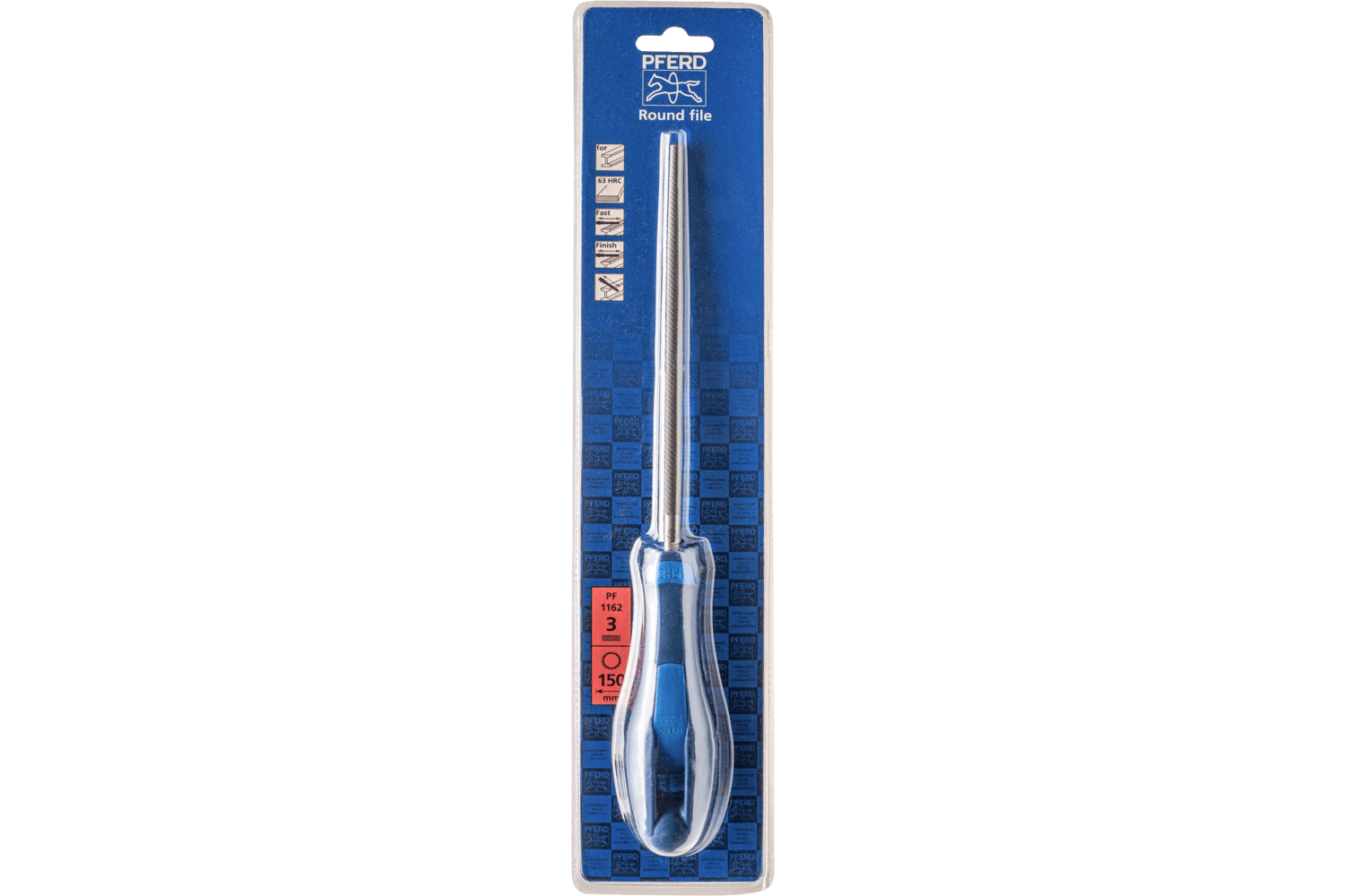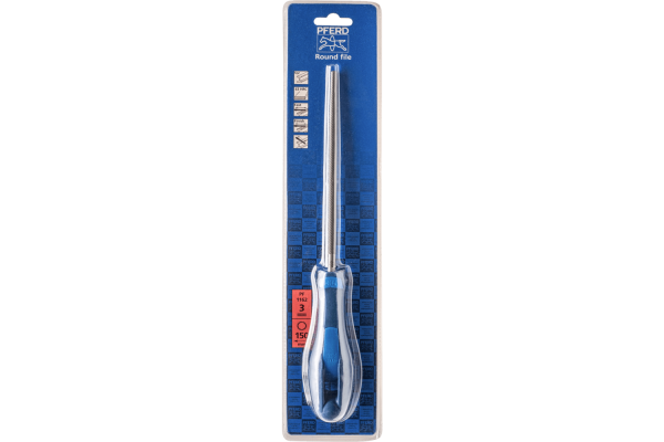 PFERD produces files for the workshop with the highest quality standards. They achieve a long tool life and very good stock removal rates. Round file with circumferential cut. Tanged version. Shape F according to DIN 7261. Suitable for work on radii and for filing profiles with inner radii. Cross cut for precision processing and finishing. Files are supplied in blister packaging with a handle.