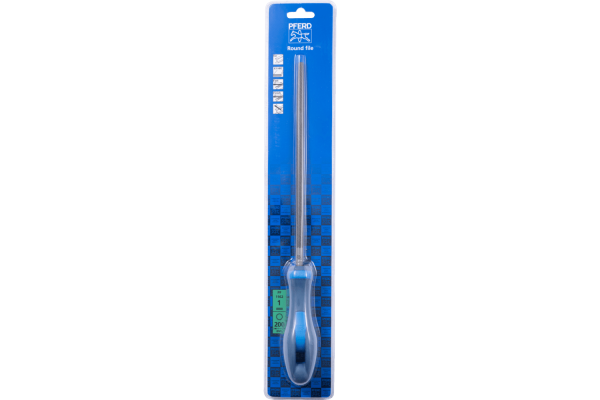 PFERD produces files for the workshop with the highest quality standards. They achieve a long tool life and very good stock removal rates. Round file with circumferential cut. Tanged version. Shape F according to DIN 7261. Suitable for work on radii and for filing profiles with inner radii. Cross cut for coarse stock removal and roughing. Files are supplied in blister packaging with a handle.