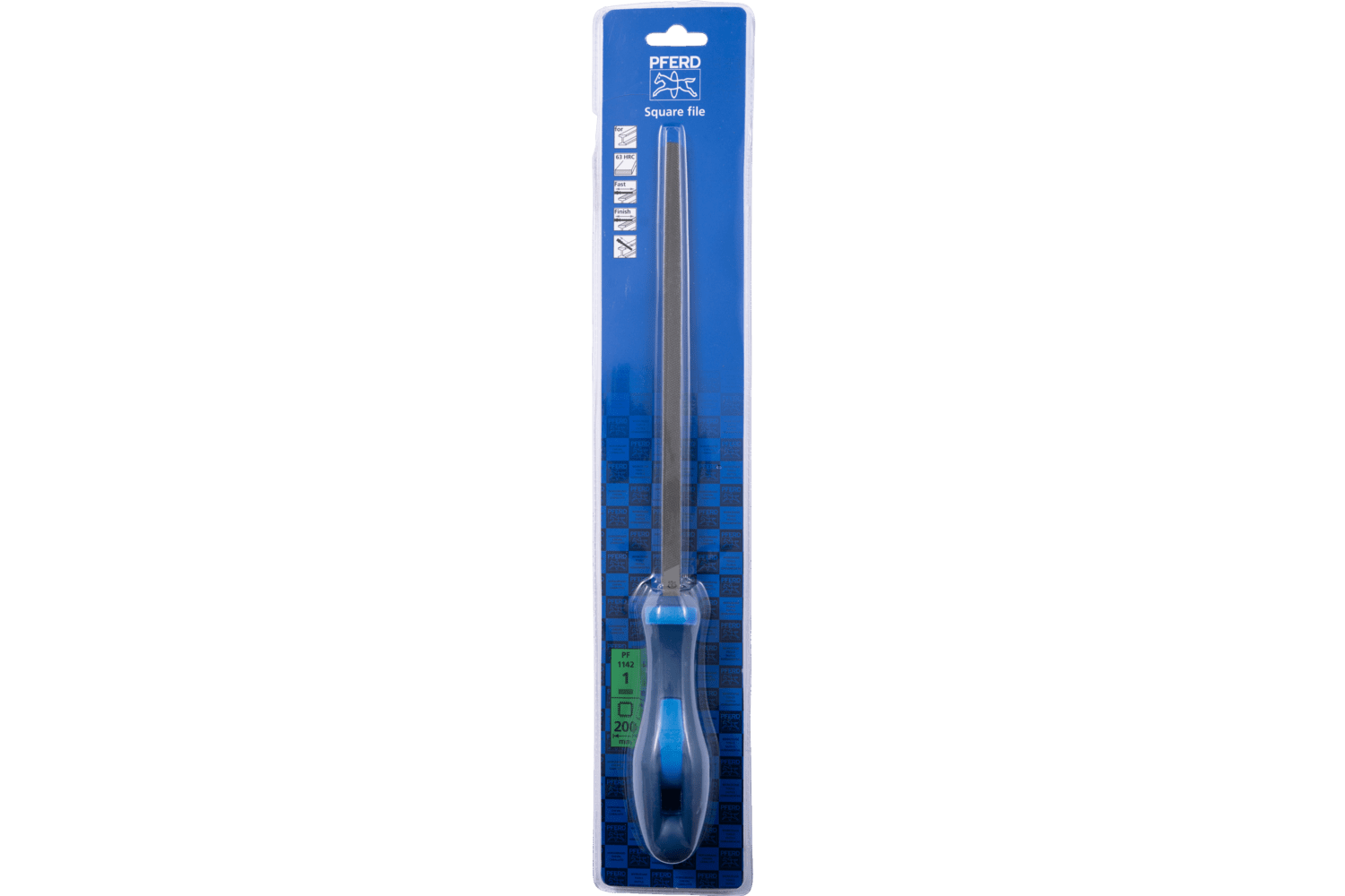 PFERD produces files for the workshop with the highest quality standards. They achieve a long tool life and very good stock removal rates. Square file, tapered and cut on four sides. Tanged version. Shape D according to DIN 7261. Suitable for filing angular profiles. Cross cut for coarse stock removal and roughing. Files are supplied in blister packaging with a handle.