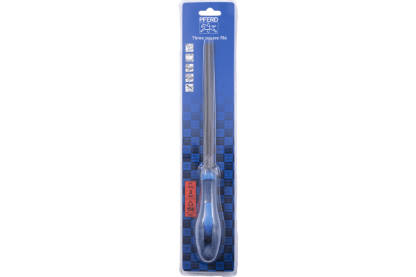 PFERD produces files for the workshop with the highest quality standards. They achieve a long tool life and very good stock removal rates. Triangular file, tapered and cut on three sides. Tanged version. Shape C according to DIN 7261. Suitable for filing angular profiles. Cross cut for precision processing and finishing. Files are supplied in blister packaging with a handle.