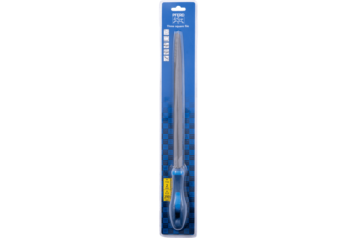 PFERD produces files for the workshop with the highest quality standards. They achieve a long tool life and very good stock removal rates. Triangular file, tapered and cut on three sides. Tanged version. Shape C according to DIN 7261. Suitable for filing angular profiles. Cross cut for general filing work. Files are supplied in blister packaging with a handle.