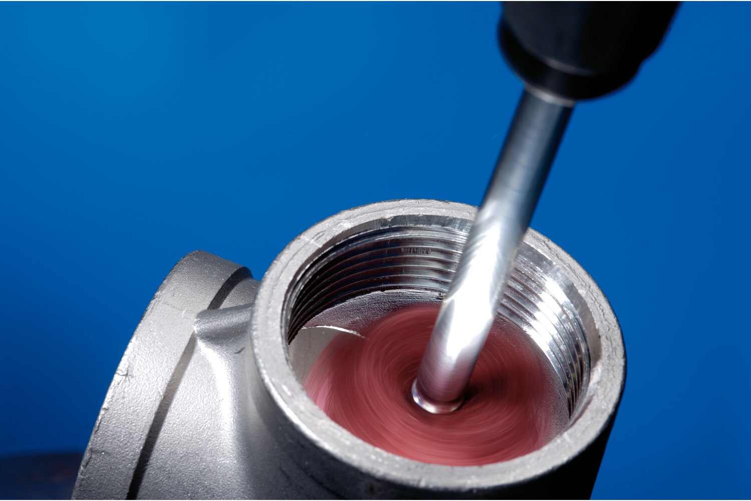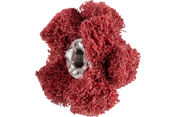 POLINOX cross buffs consist of non-woven polyamide abrasive, into which abrasive grain is integrated. The non-woven abrasive is star-shaped and stacked in layers which are connected in the centre. Particularly suitable for narrow application areas and hard-to-reach places such as drilled holes and indentations. POLINOX cross buffs are suitable for cleaning, deburring and fine grinding of inner surfaces and contours.