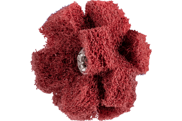 POLINOX cross buffs consist of non-woven polyamide abrasive, into which abrasive grain is integrated. The non-woven abrasive is star-shaped and stacked in layers which are connected in the centre. Particularly suitable for narrow application areas and hard-to-reach places such as drilled holes and indentations. POLINOX cross buffs are suitable for cleaning, deburring and fine grinding of inner surfaces and contours.