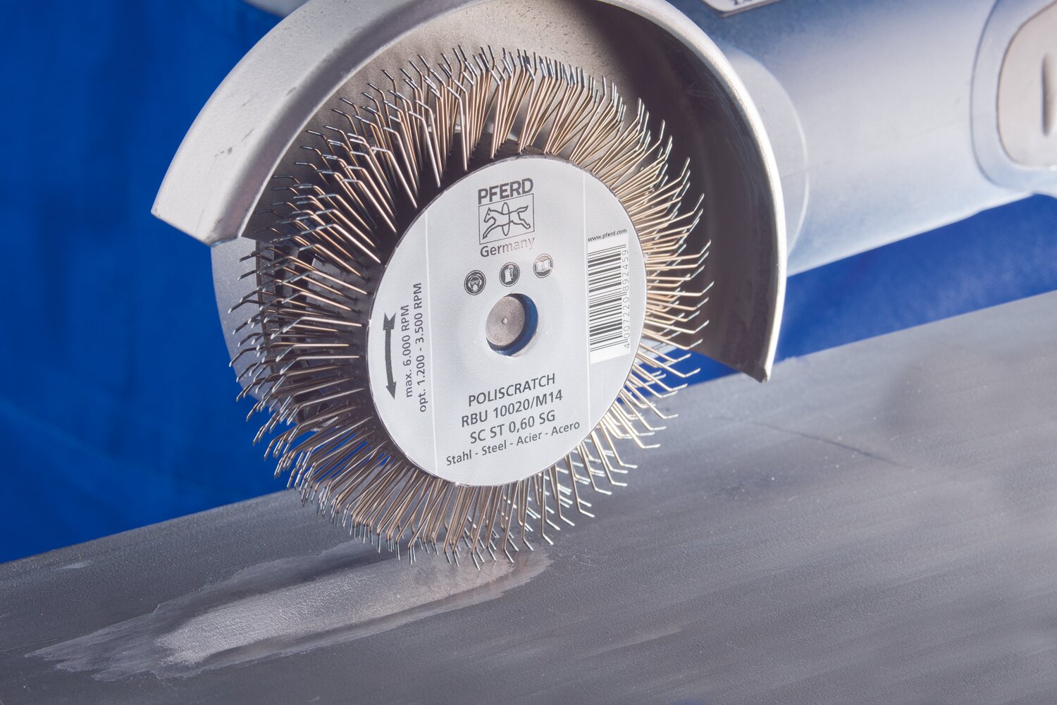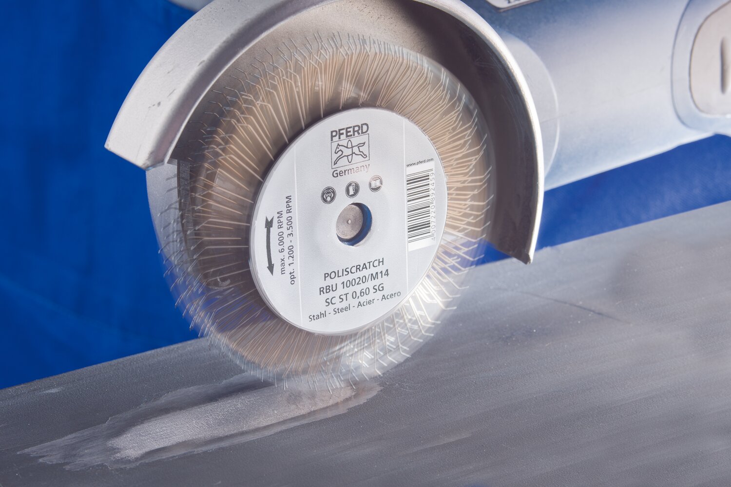 Excellent for processing and removing soft materials such as underseal and anti-drumming compound. Most suitable for achieving rough surfaces with a sandblasted appearance due to the specific geometry of the filament material. Steel wire is the most common filament material. Brushes with steel wire as the filament material are especially well-suited to work on surfaces and deburring. PFERD special wire has high tensile strength and bending fatigue strength. This ensures that the wire wears down in the optimal way, as well as a long tool life, even in extreme brushing applications. Steel wire withstands temperatures up to 300 °C.