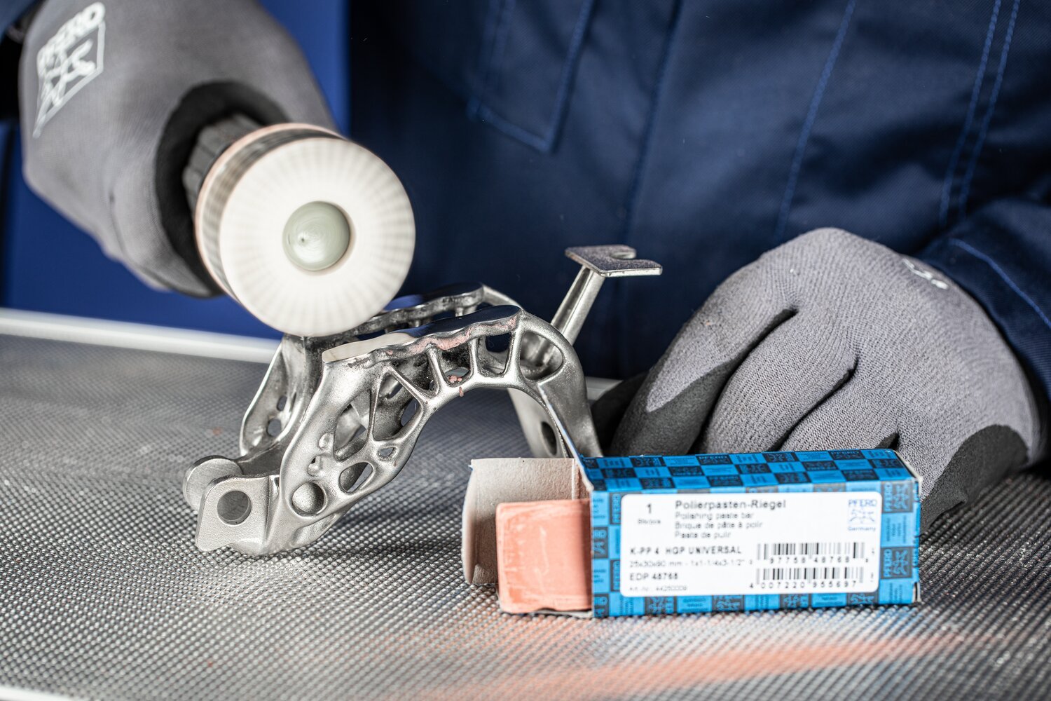 Apart from being used with felt tools, polishing pastes are also used in combination with cloth rings for pre-polishing and high-gloss polishing. If the intention is to achieve very smooth surface finishes, use several or even all variants successively. Polishing paste bars are available in a small pack and a bulk pack. The UNIVERSAL version is suitable for high-gloss polishing with a soft cloth (TW), high-gloss polishing, and buffing with flannel (FL).