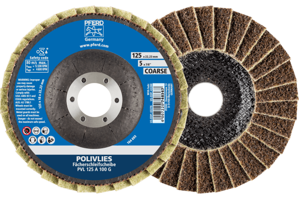 For general coarse to fine grinding applications in industry and professional trades. They are especially well-suited to work on large stainless steel (INOX) surfaces. POLIVLIES grit size 100 G = coarse (yellow-brown)