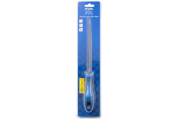Three square saw files from PFERD are triangular tapered files with tang. The saw files are suitable for use on steel and cast steel and especially suitable for sharpening sawing tools. PFERD offers three square saw files in various versions and shapes. Triangular files, tapered to the tip with tang. Cut on three sides and three edges. Single cut for general sharpening tasks. Files are supplied in blister packaging with a handle.
