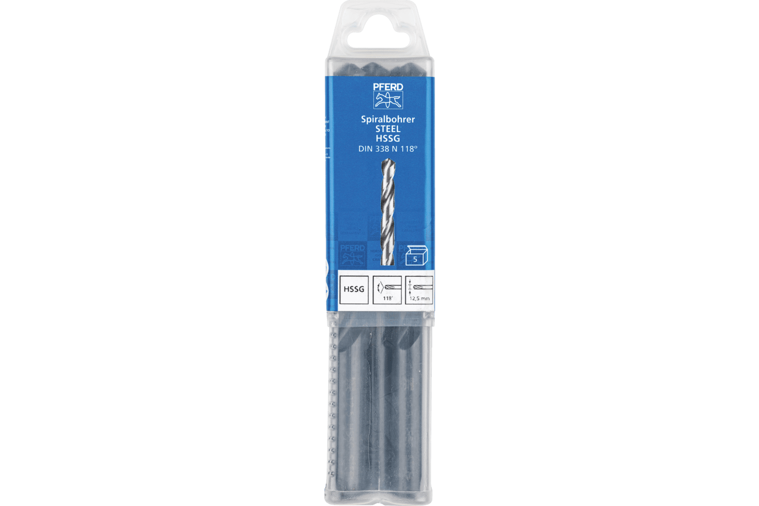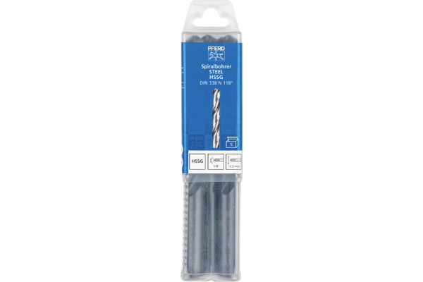 Drilling tools with cross grinding for industrial uses. Fully ground, right-hand turning versions that produce precise drill holes thanks to their high concentricity and exact centring. PFERD offers spiral drills in the STEEL (118 ° point angle) and INOX (135 ° point angle) versions. High-performance drilling tools in the STEEL in HSSG (M2) version for industrial uses. Fully ground right-hand turning version with cross grinding that produces precise drill holes thanks to their high concentricity and exact centring.