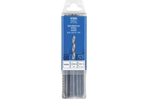 Drilling tools with cross grinding for industrial uses. Fully ground, right-hand turning versions that produce precise drill holes thanks to their high concentricity and exact centring. PFERD offers spiral drills in the STEEL (118 ° point angle) and INOX (135 ° point angle) versions. High-performance drilling tools in the STEEL in HSSG (M2) version for industrial uses. Fully ground right-hand turning version with cross grinding that produces precise drill holes thanks to their high concentricity and exact centring.