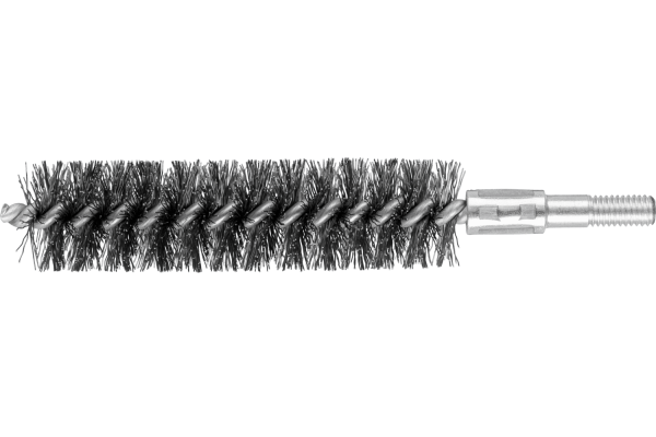 Particularly suitable for deburring and cleaning pipes, threads, coupling sleeves and cylinders. Steel wire is the most common filament material. Brushes with steel wire as the filament material are especially well-suited to work on surfaces and deburring. PFERD special wire has high tensile strength and bending fatigue strength. This ensures that the wire wears down in the optimal way, as well as a long tool life, even in extreme brushing applications. Steel wire withstands temperatures up to 300 °C. In addition to the thread, this tube brush has a 6 mm shank.