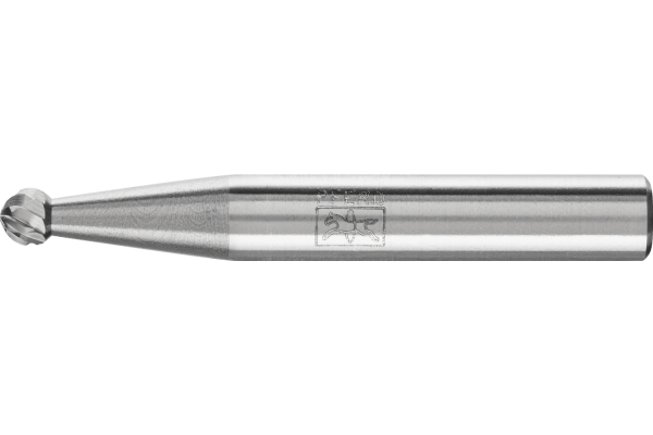 Cut 3 PLUS is cross cut and especially well-suited to machining of cast iron, steel, stainless steel (INOX), nickel-based alloys and titanium alloys. It is characterized by its high stock removal rate. Tungsten carbide burrs for general applications are suitable for fine and coarse stock removal on the key materials used in industrial manufacturing. They provide a good stock removal rate and are not specific to a particular material. Ball-shaped burr according to DIN 8032 with cut conforming to DIN 8033.