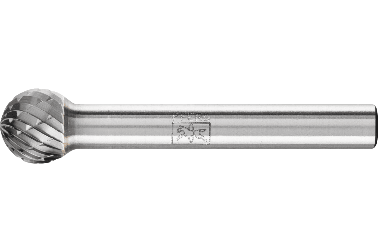 Cut 3 PLUS is cross cut and especially well-suited to machining of cast iron, steel, stainless steel (INOX), nickel-based alloys and titanium alloys. It is characterized by its high stock removal rate. Tungsten carbide burrs for general applications are suitable for fine and coarse stock removal on the key materials used in industrial manufacturing. They provide a good stock removal rate and are not specific to a particular material. Ball-shaped burr according to DIN 8032 with cut conforming to DIN 8033.