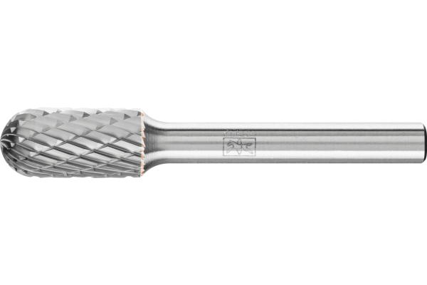 Cut 3 PLUS is cross cut and especially well-suited to machining of cast iron, steel, stainless steel (INOX), nickel-based alloys and titanium alloys. It is characterized by its high stock removal rate. Tungsten carbide burrs for general applications are suitable for fine and coarse stock removal on the key materials used in industrial manufacturing. They provide a good stock removal rate and are not specific to a particular material. Cylindrical burr with radius end according to DIN 8032 with cut conforming to DIN 8033. Combination of cylindrical and ball-shaped geometries.