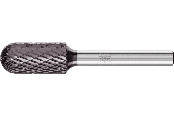 Cut 3 PLUS is cross cut and especially well-suited to machining of cast iron, steel, stainless steel (INOX), nickel-based alloys and titanium alloys. It is characterized by its high stock removal rate. Tungsten carbide burrs for general applications are suitable for fine and coarse stock removal on the key materials used in industrial manufacturing. They provide a good stock removal rate and are not specific to a particular material. Cylindrical burr with radius end according to DIN 8032 with cut conforming to DIN 8033. Combination of cylindrical and ball-shaped geometries. Tungsten carbide burrs with a long shank are ideal for efficiently machining small, hard-to-reach areas of components. They can be shortened if required. This version has a long steel shank.