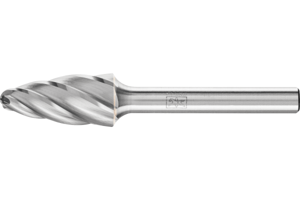 PFERD has further developed the ALU cut especially for stock removal on aluminium. This cut is characterized by its high stock removal rate. Tree-shaped burr with radius end according to DIN 8032.
