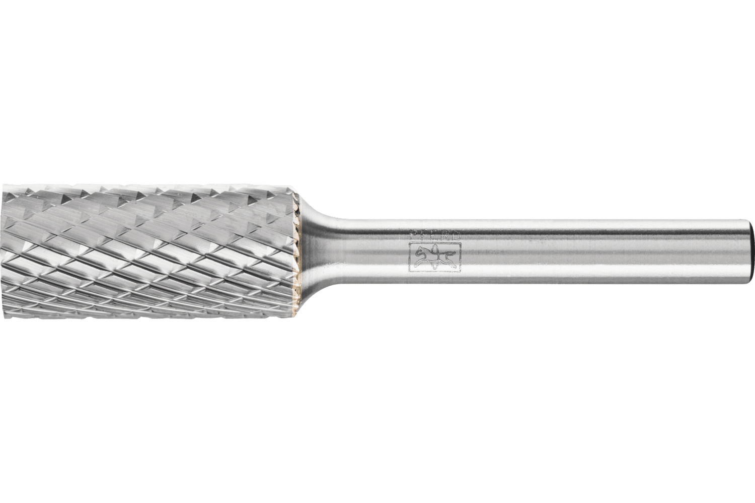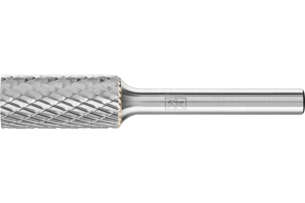 The TOUGH cut has been developed especially for tough applications in dockyards, foundries and steel construction. It is also ideal for use in all manufacturing sectors where, due to the difficult production environment, tooth breakages or other damage to conventional burrs is a frequent occurrence. Tungsten carbide burrs with the TOUGH cut are particularly aggressive and are characterized by high stock removal. Cylindrical burr according to DIN 8032.