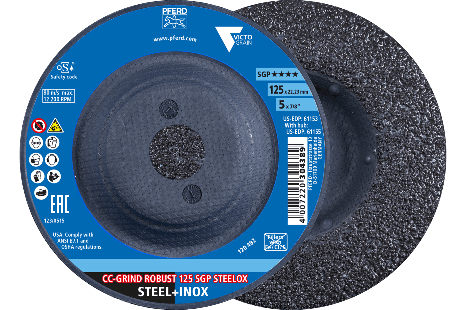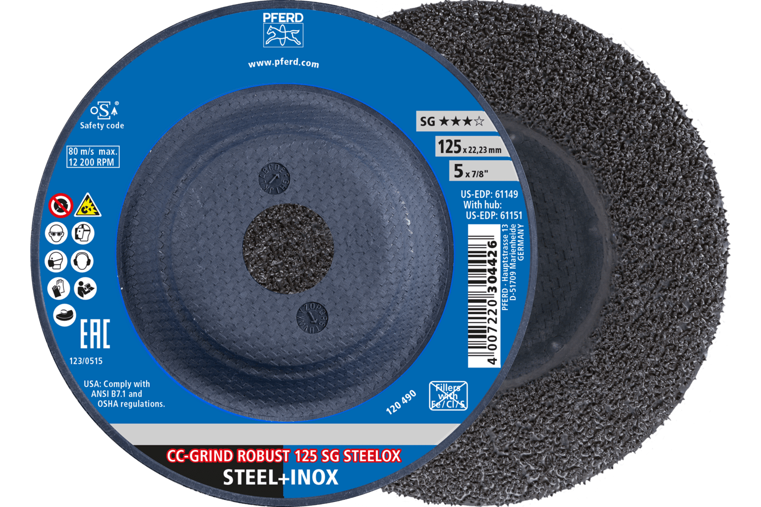 Cc-Grind Robust Grinding Disc 125X22.23 Mm Performance Line Sg Steelox For Steel/Stainless Steel