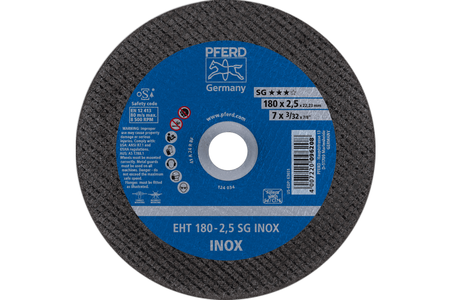 Cut-Off Wheel Eht 180X2.5X22.23 Mm Flat Performance Line Sg Inox For Stainless Steel