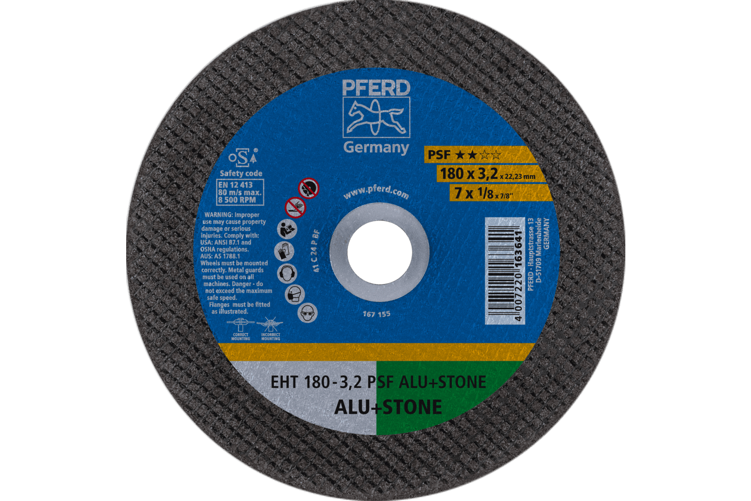 Cut-Off Wheel Eht 180X3.2X22.23 Mm Flat Uni. Line Psf Alu+Stone For Aluminium/Non-Ferrous Metals/Stone